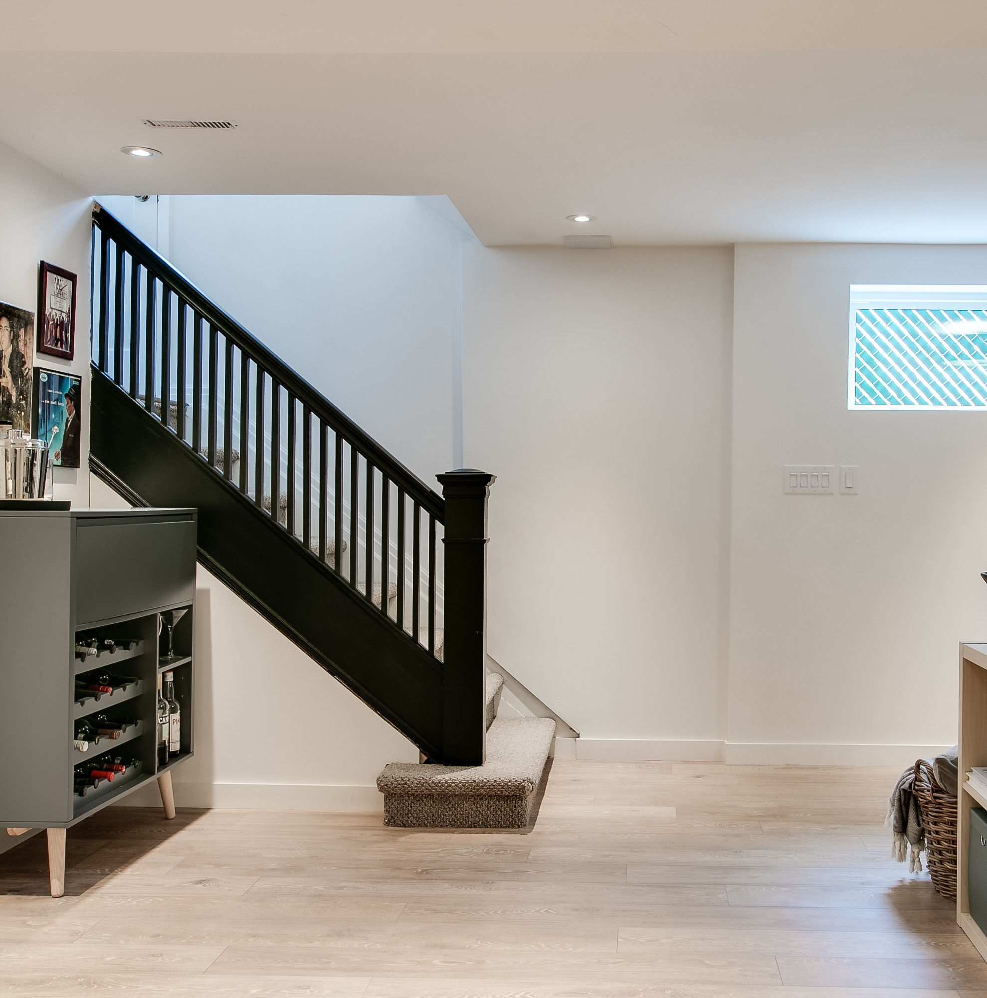 The basement was renovated down to the studs in 2016, with new insulation, a handsome staircase, laminate floors, and pot lights. The rec room is inviting and comfortable for relaxed hang-out time for the whole family.